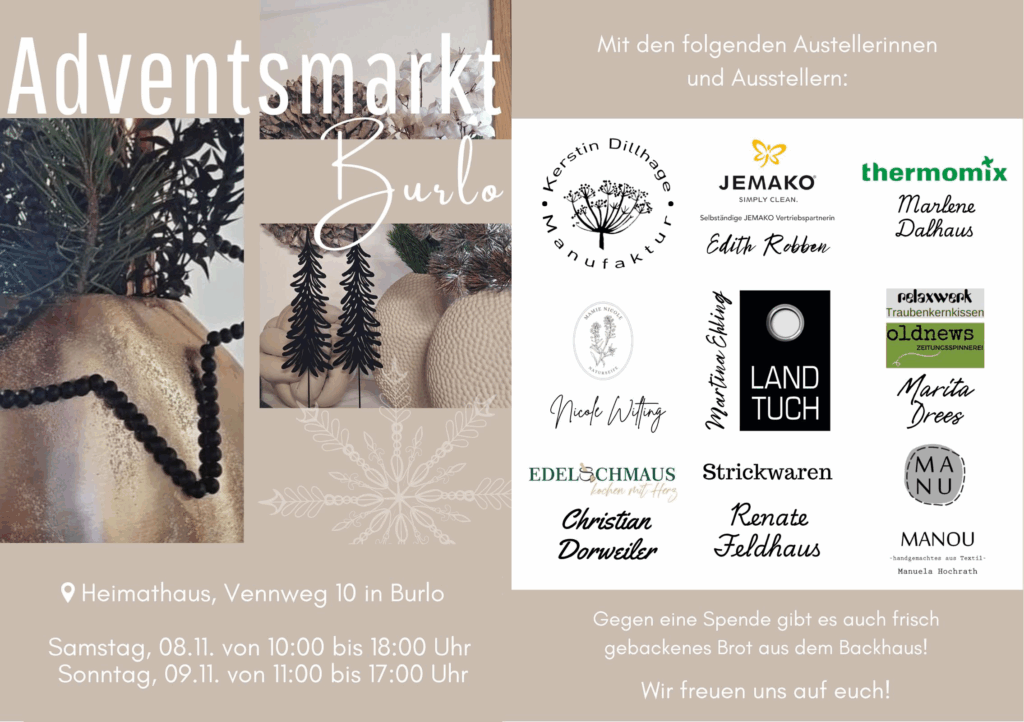 Am 08. & 09. November findet der Adventsmarkt im Heimathaus statt.